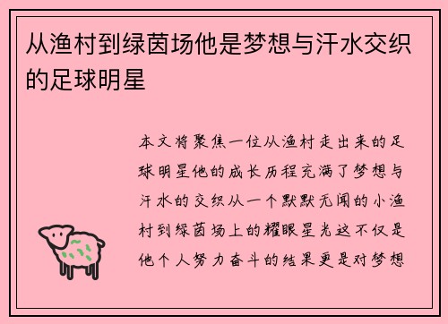 这是一篇关于从艰难童年走出的足球明星逆袭人生的励志故事。文章将通过四个方面详细阐述这一主题:首先,讲述足球明星的艰难童年,展现他们在困境中的坚韧不拔;其次,分析他们是如何通过努力与汗水追逐梦想,并最终实现人生逆袭的;接着,探讨成功背后所需的支持与机遇,包括家庭、朋友和教练的影响;最后,总结这些故事对我们每个人的启发,以及如何在生活中汲取这种力量。整篇文章将呈现出励志、感人而又充满希望的人生旅程。 ...