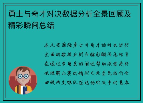 2023年10月19日,NBA常规赛迎来了雷霆与猛龙的激烈对决。这场比赛吸引了众多球迷的关注,双方在赛场上展开了精彩的攻防战。通过对精彩视频的回顾以及赛后分析,我们将深入探讨比赛中的关键时刻、球员表现、战术布置和未来展望。本文将从四个方面详细解析这场比赛,包括比赛过程亮点、球员表现分析、战术布局解读以及未来展望。同时,我们也将总结整场比赛带来的启示和思考,为热爱篮球的朋友们提供更深层次的理解与感悟...